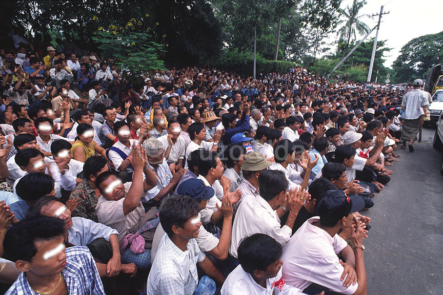 Peoplea are coming together in front of Aung San Suu Kyi's