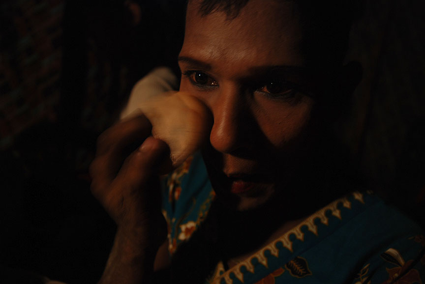 [ A performers preparing for the traditional stage(zat pwe). ]