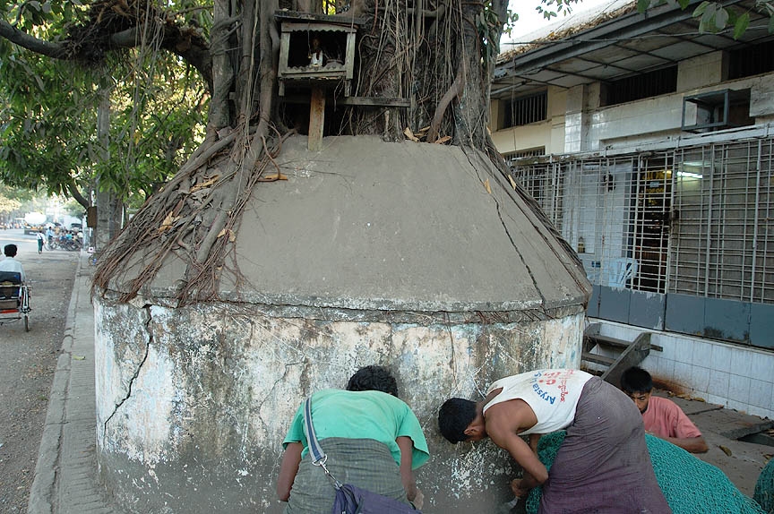 [ Nats (Traditional Burmese spirits) shrine in Rangoon. ]