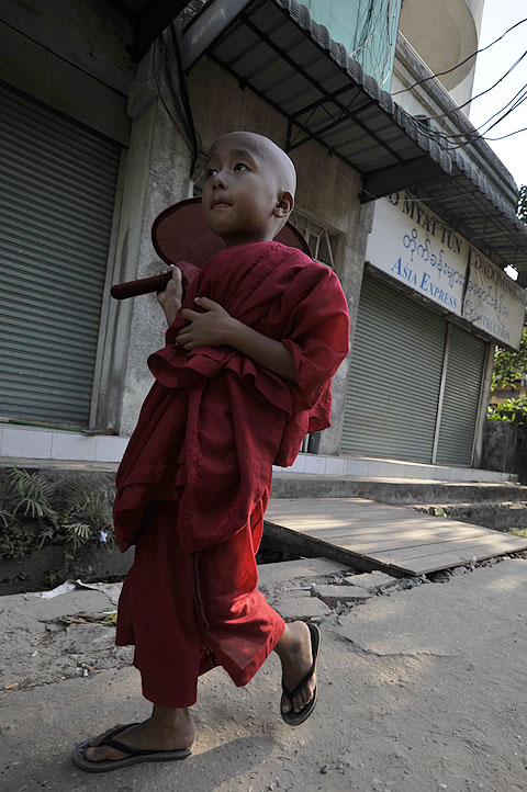 [ Walking out for alms downtown Rangoon (Yangon) ]