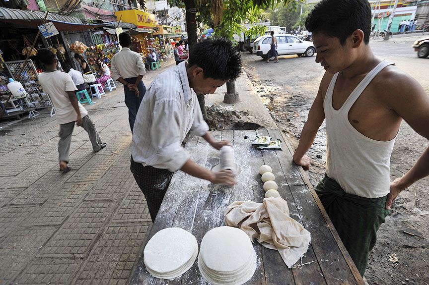 [ Kneading dough by hand downtown Rangoon (Yangon) ]