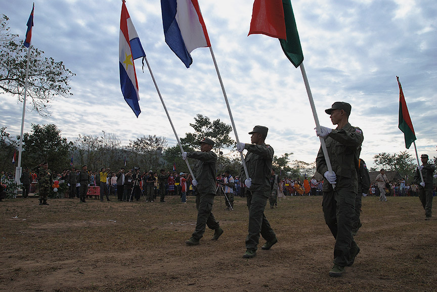 [ The troops of Karen National Liberation Army (KNLA) marching on the day of 59th Revolution Day. ]