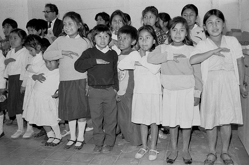 Singing the national anthem at the NGO supported school.